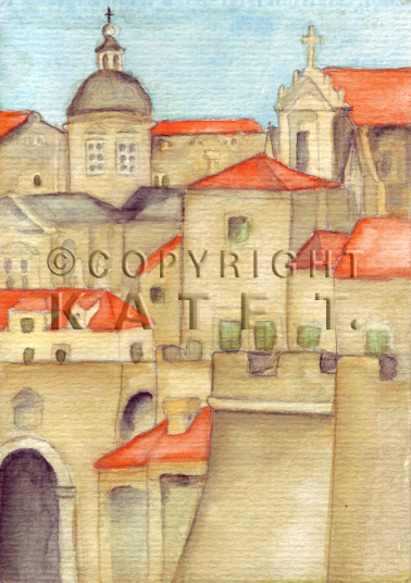 Aquarelle aus der dalmatinischen Hafenstadt Dubrovnik, die als „Reisetagebuch” entstanden sind.
